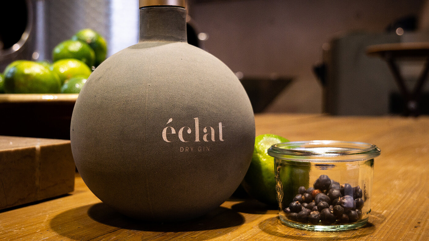 Dazu gesellt sich jahrelanges Know-How und Erfahrung im Sektor Spirituosen des Ehepaars Holz und last but not least die unkonventionelle Experimentierfreudigkeit hinsichtlich Geschmack und Design des éclat Teams. Einen qualitativ hochwertigen, handwerklich sauberen Gin, nach dem eigenem Geschmack kreieren war das Bestreben des Trios. Gut eineinhalb Jahre Tüftelei sind seit jener Nacht vergangen. Für den éclat Dry Gin werden die Botanicles in Alkohol mazeriert und danach mehrfach destilliert. Zu den von Hand gelesenen Wacholderbeeren von der schwäbischen Alb gesellen sich Majoran, Rosmarin und frische Aromen von Orangen- Zitronenschalen & der Hibiskusblüte. Dazu eine Prise Eichenlaub & Kiefernadeln aus dem Naturpark Schönbuch. Weitere magische Komponenten unterliegen der Verschwiegenheit der Macher.